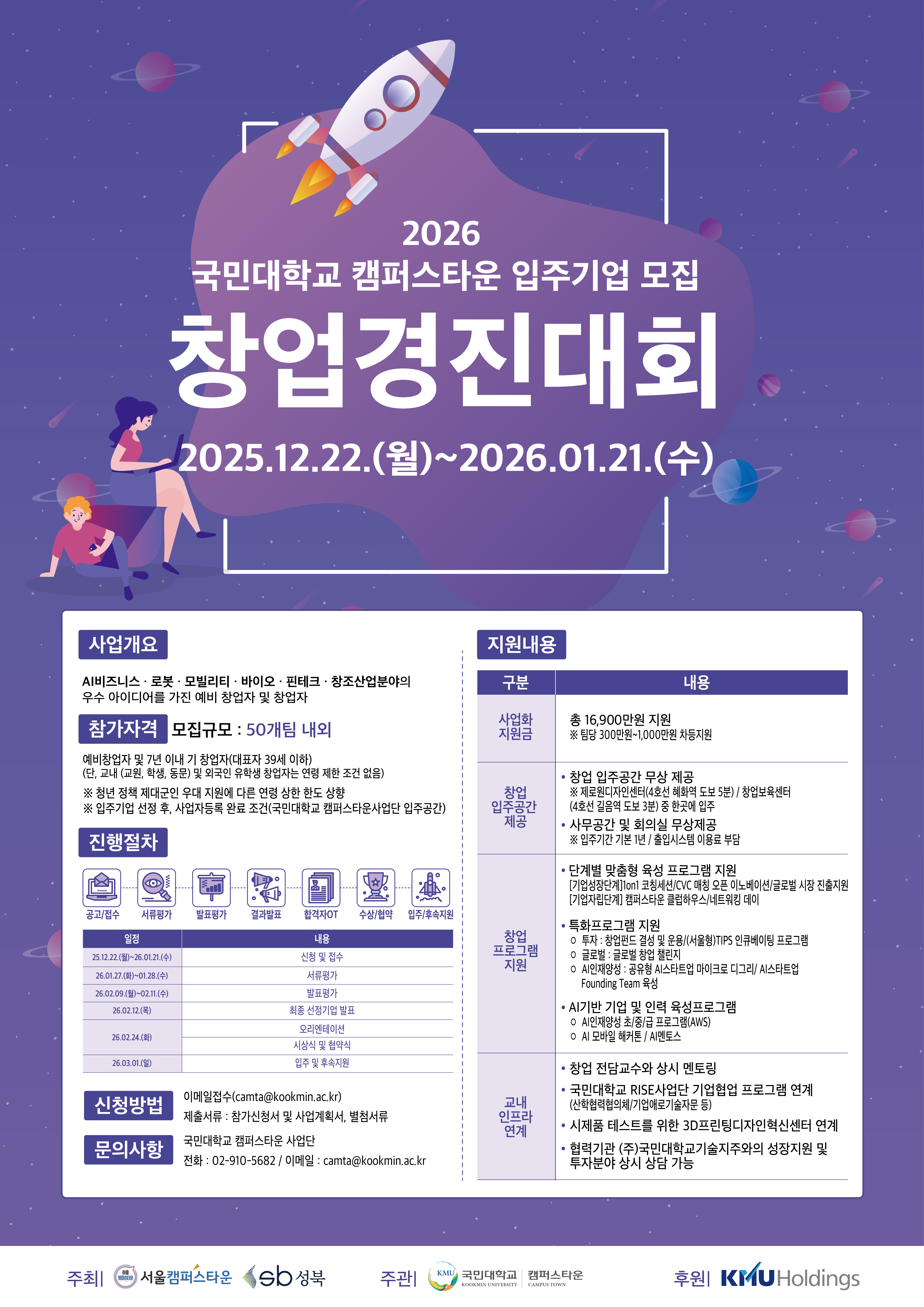 [2026 국민대학교 캠퍼스타운 창업경진대회 입주기업 모집 공고]